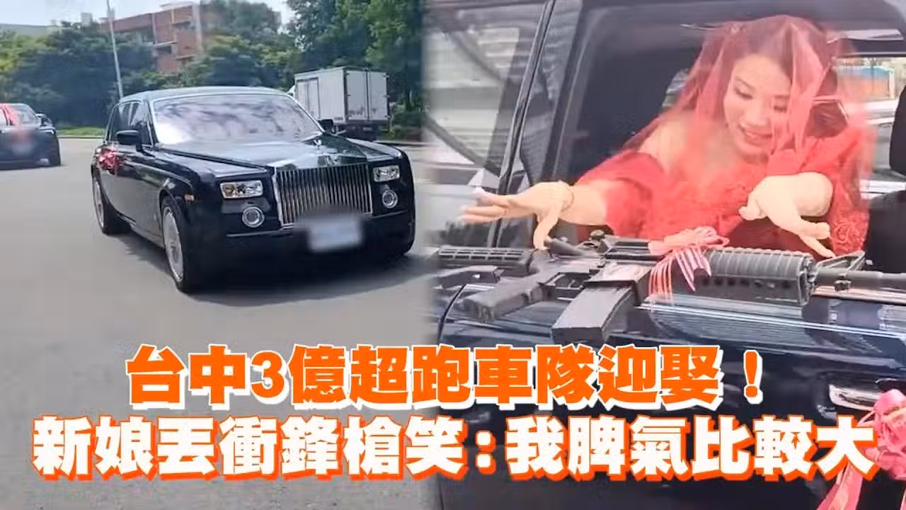 不按傳統丟扇子 出門丟衝鋒鎗 新娘笑:我脾氣比較大