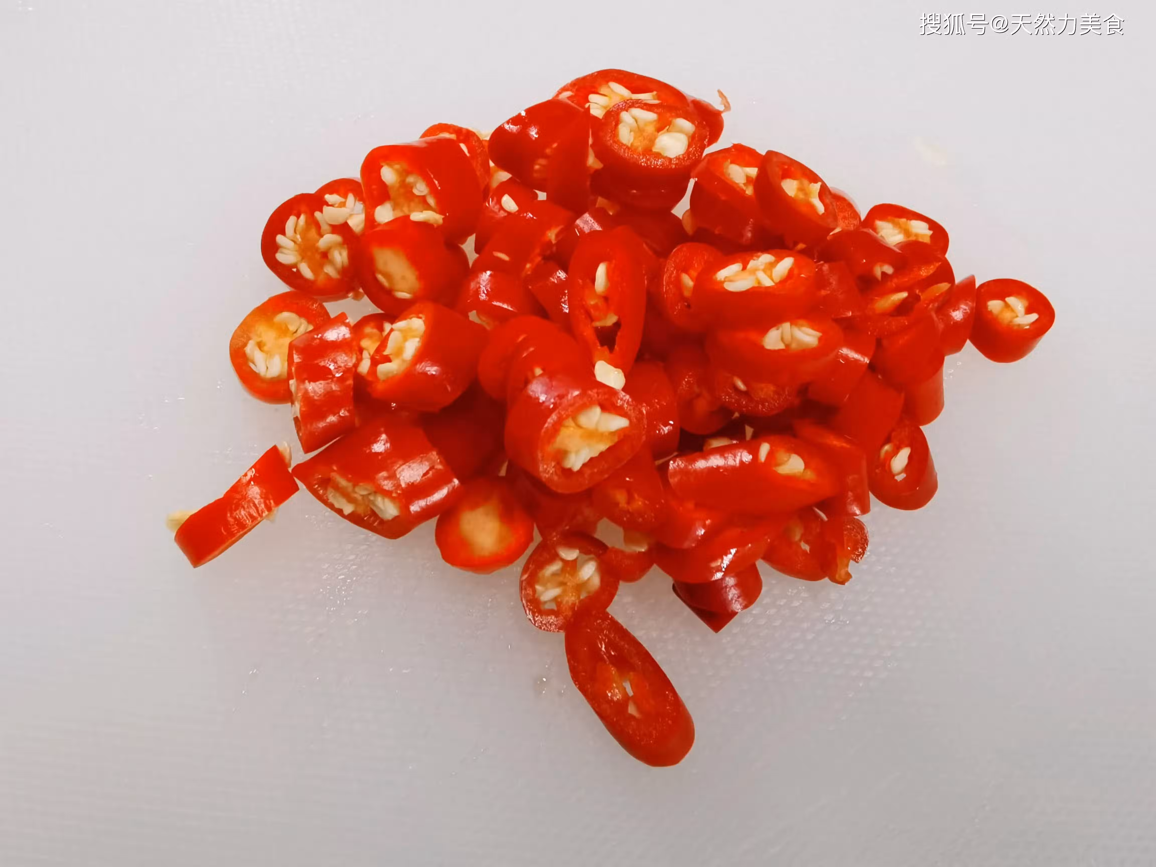 6、青辣椒切圈,泡野山椒切成小圈。生薑和蒜子是去腥增香的,小米椒和青辣椒用來增辣配色的,野山椒是用來增加風味增辣的。