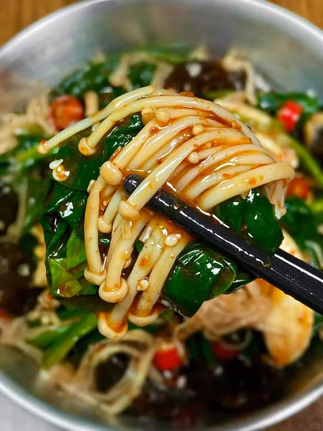 菠菜木耳拌金針菇,簡單好吃又掉秤,不愛吃菠菜的我愛上了這個吃法!