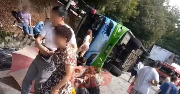 (吉隆坡29日訊/獨家報導)一輛旅遊巴士在雲頂高原下山路失控翻覆,導致大批乘客受傷,消拯員緊急到場,救出受困巴士內的乘客!