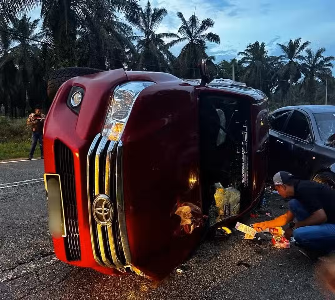 他說,貨卡在駛至事發地點一個轉彎處時,沖入轎車的車道,撞上轎車再翻覆。