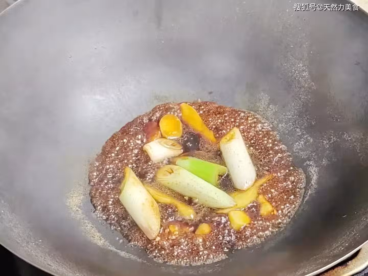 6、接著還要加5克冰糖進去,冰糖可以起到提鮮去膩的作用,這是一道咸香口味的菜,所以冰糖不能加太多,不能吃出甜味來。
