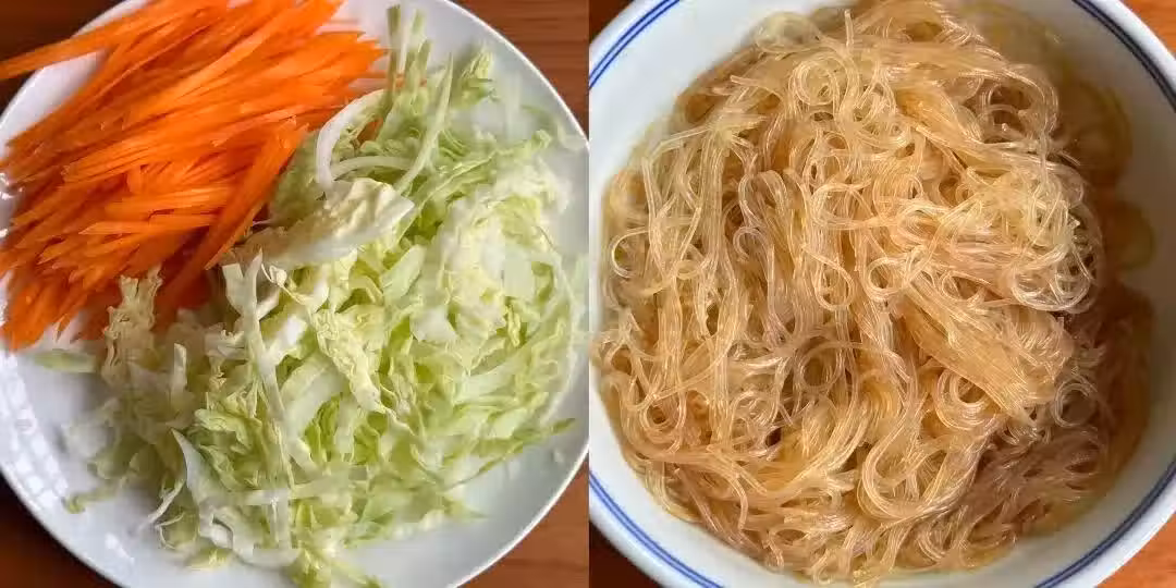 4、再次熱鍋涼油,下入蒜片,翻炒至微黃,散發出濃郁的蒜香。接著,將切好的胡蘿蔔絲放入鍋中,翻炒至胡蘿蔔絲稍微變軟。將切好的包菜絲加入鍋中,與胡蘿蔔絲一起翻炒均勻。