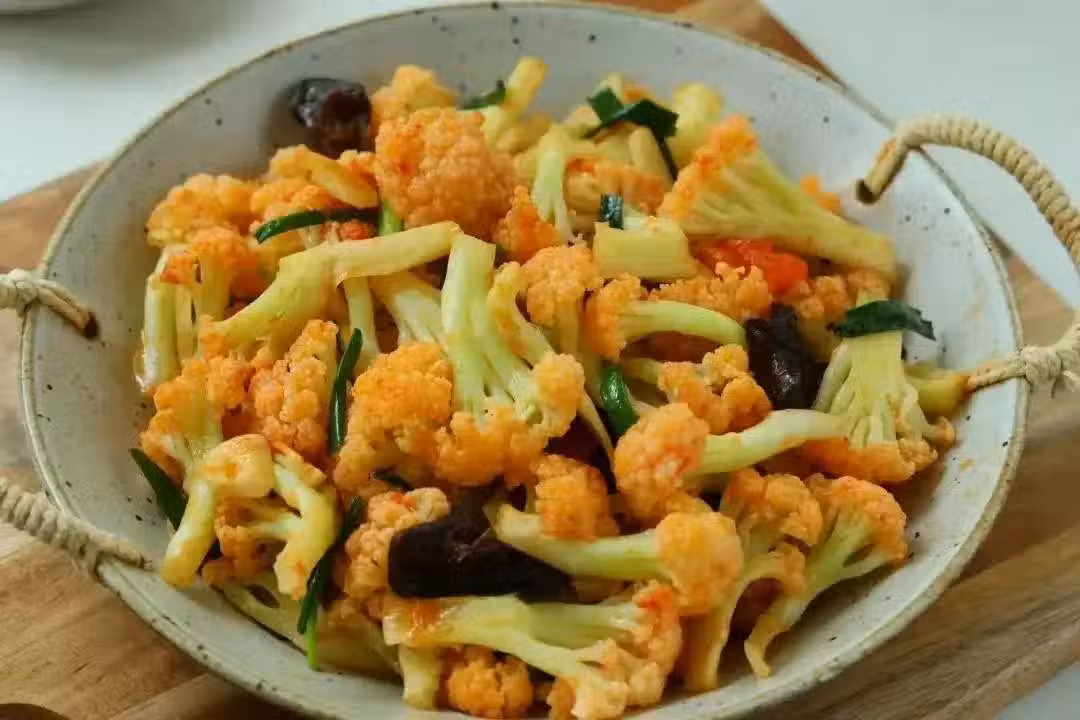 這道菜的主角是花菜、西紅柿和木耳。花菜潔白如玉,口感清脆;西紅柿鮮艷欲滴,酸甜可口;木耳則黑亮滑嫩,口感豐富。三者搭配在一起,不僅色彩對比鮮明,更在口感上形成了鮮明的對比,讓人回味無窮。