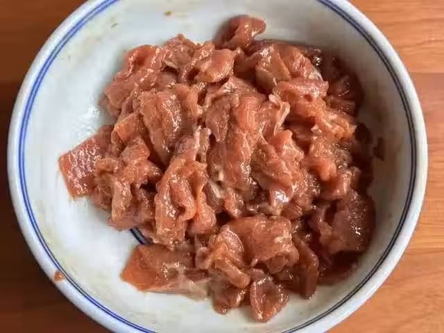 3、熱鍋涼油,輕輕滑入腌制好的牛肉片,大火快炒,鎖住肉汁,直至肉片變色且邊緣微微焦黃,即刻盛出,避免過熟影響口感。這一步,考驗的是對火候的精準把控和對食材變化的敏銳觀察。