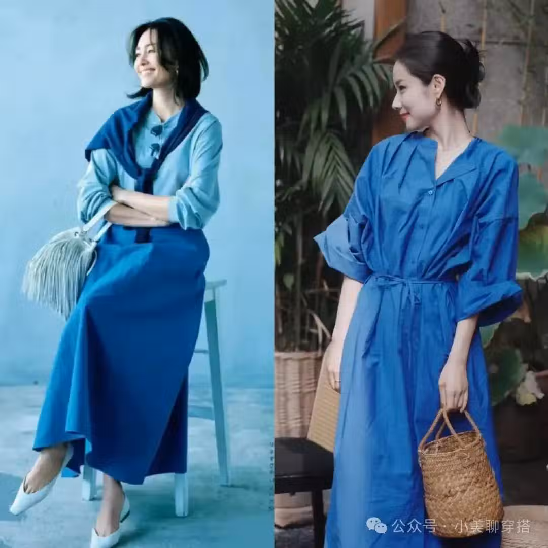 夏天可以選擇一件克萊因藍色的襯衫裙,既有襯衫的帥氣硬朗,又不乏連衣裙的溫婉優雅,加上高級的克萊因藍,營造出時髦的女人味。