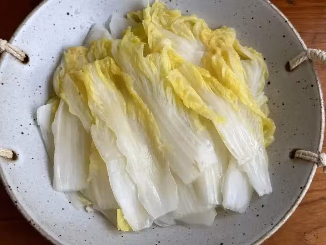 5、料汁倒在雞肉碗里,用筷子輕輕拌勻,確保每一塊雞肉都能充分裹上這層濃郁的調料汁,吸收其精華。最後,撒上一些新鮮香菜段,輕輕翻拌幾下,讓香菜的清新與雞腿肉的鮮美完美融合。將拌好的雞腿肉連同剩餘的調料汁一同倒入鋪有娃娃菜的碗中。