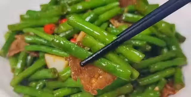 平時我們自己在家裡炒豆角,炒出來裝盤裡豆角都發黃,色澤上不好看,而且吃起來沒有那種清脆的口感。
