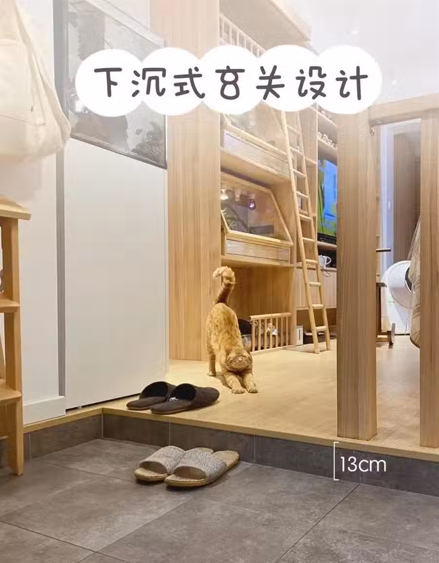 現在家居空間的室內層高都有限制,如果要做下沉式玄關,落差大多只需做到3-10cm左右就可以了。