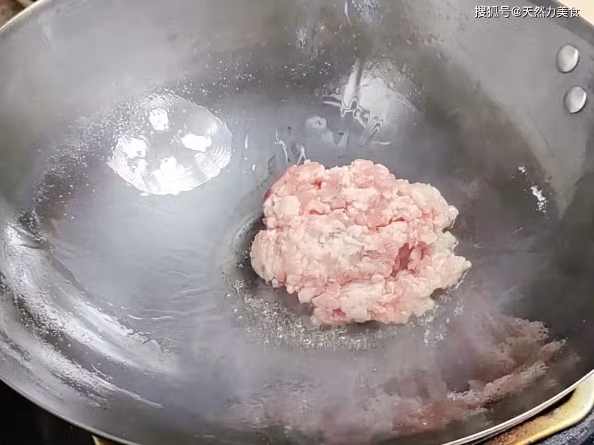 6、一直把肉末煸炒到外表稍微有點金黃,而且豬油也煸出一部分來了,這時候肉末的香味已經很濃郁了,如果喜歡再香一點的也可以再煸炒一會,把肉末煸炒到有些酥脆。