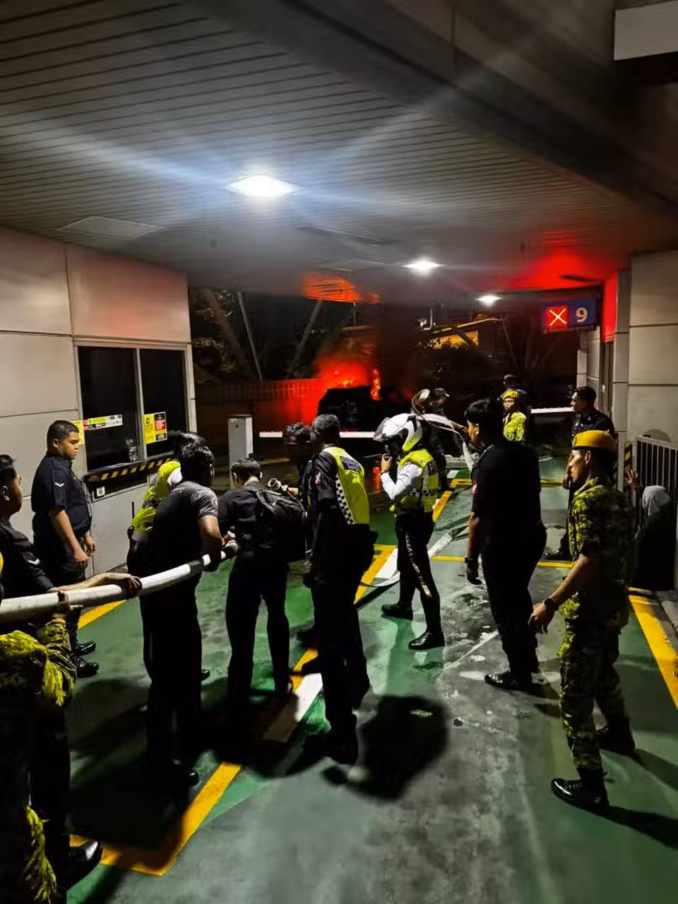轎車在新山蘇丹依斯干達大廈的第9個汽車出境櫃檯上,突然起火。