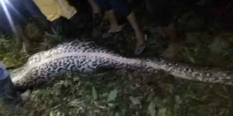 人們殺死蟒蛇後,在裡面發現了失蹤農民的屍體。