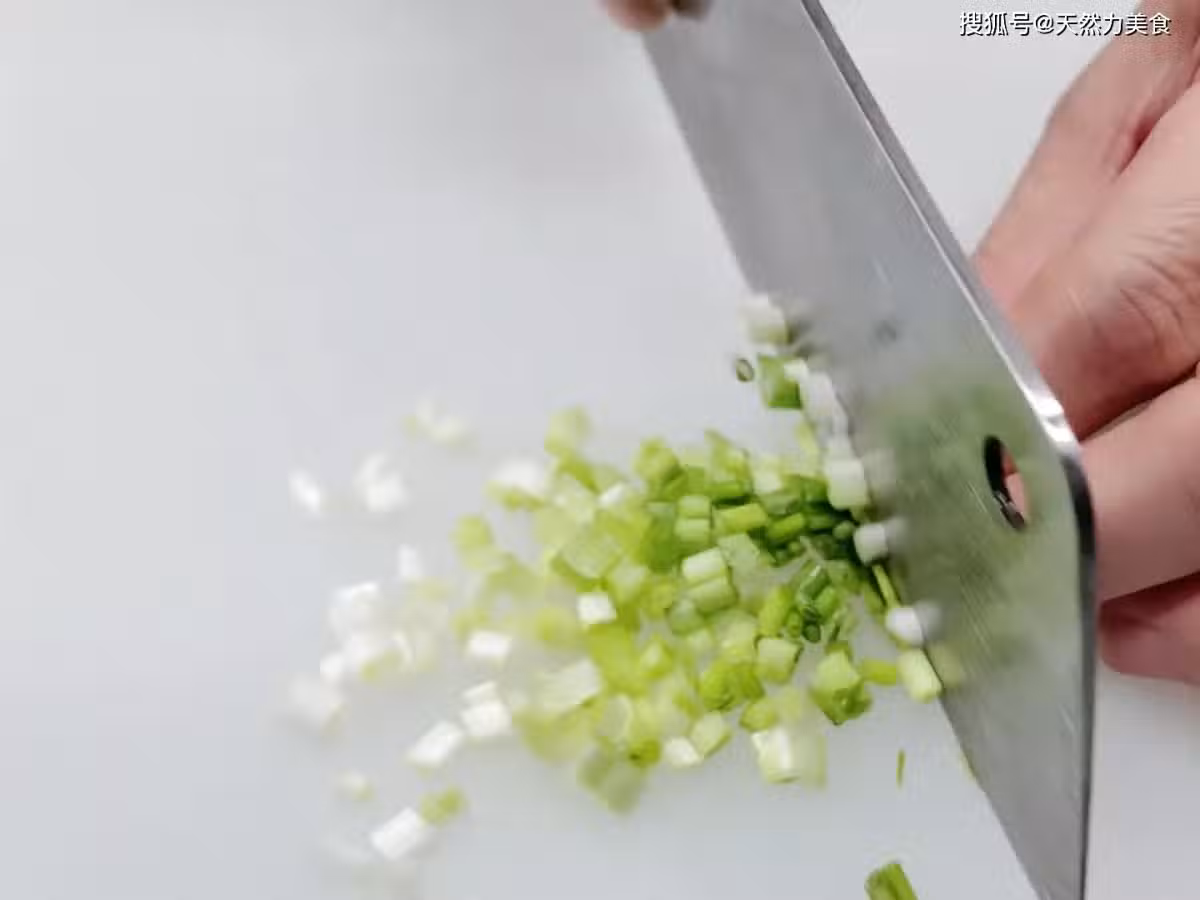 6、把鍋燒熱後加入50克正宗的花生油,把油燒到微微冒煙,然後把油分2-3次澆在蒜末、小蔥白和辣椒的上面,把蒜末、小蔥白和辣椒的香味激發出來。