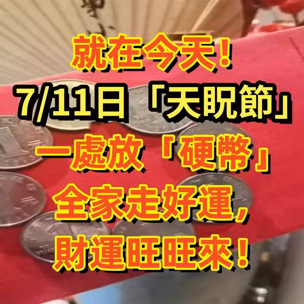 就在今天!7/11日「天眖節」一處放「硬幣」全家走好運,財運旺旺來!