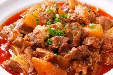 牛腩切成塊,放入花椒水中浸泡3小時,泡出血水。然後洗凈,瀝干水分備用。