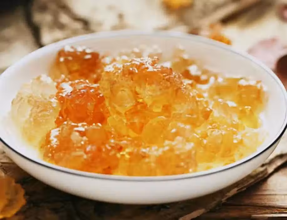 第一步,桃膠事先放入清水中浸泡,一個晚上的時間,將桃膠充分泡發直到沒有硬芯的狀態,待將桃膠泡好水後,去除雜質,清洗乾淨;