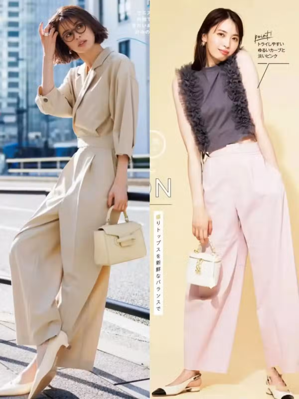 無齡感穿搭,服裝配色可以不那麼醒目,也不要形成很明顯的截斷感。同色系或者鄰近色,就可以通過視覺的順延,營造出拉伸縱向比例的效果。