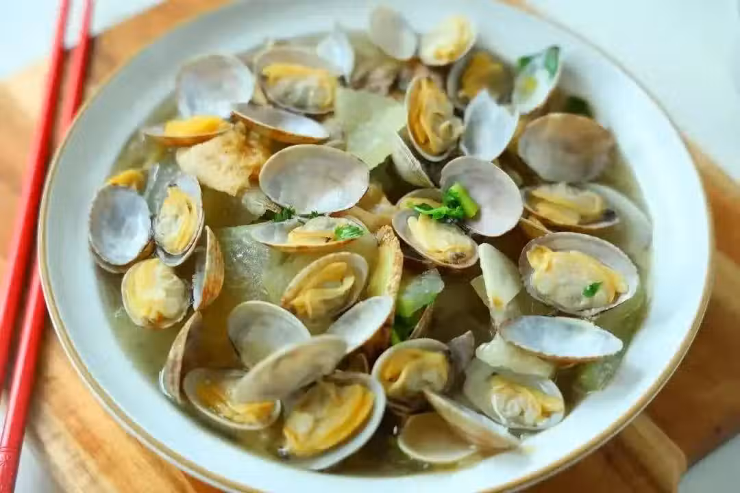 冬瓜燴花蛤的最大特色在於其選材的精妙與搭配的和諧。冬瓜,以其清甜多汁、性涼解暑的特點,成為夏日餐桌上的寵兒;而花蛤,作為海鮮中的佼佼者,肉質細嫩,富含大海的鮮甜與礦物質,兩者相遇,仿佛是大自然最巧妙的安排。這道菜肴既保留了海鮮的原汁原味,又融入了冬瓜的清新,二者相輔相成,共同演繹了一場關於「鮮」與「清」的味覺演出。