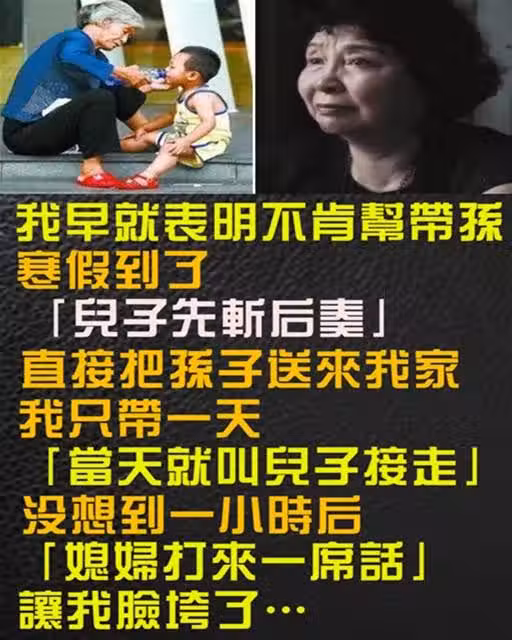 我早就表明不肯幫帶孫!寒假到了「兒子先斬後奏」直接把孫子送來我家!我只帶一天「當天就叫兒子接走」 沒想到一小時後「媳婦打來一席話」讓我臉垮了…