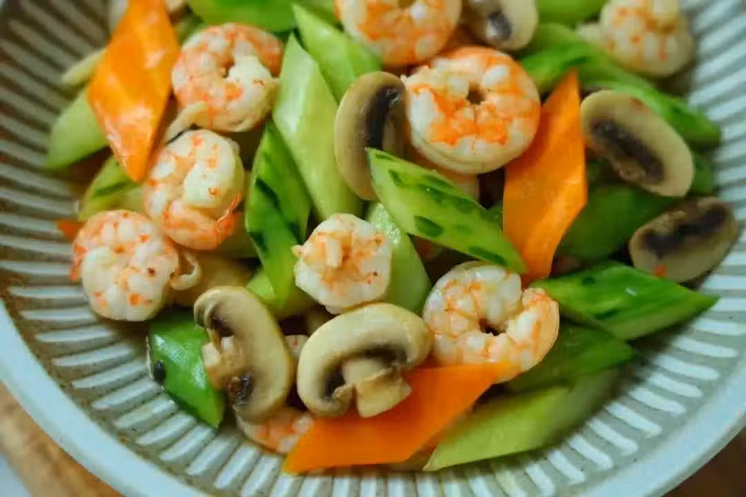青瓜口蘑炒蝦仁的顏值更是其不可忽視的魅力所在。色彩斑斕的食材搭配,加之烹飪過程中恰到好處的火候控制,使得這道菜在呈現時如同藝術品一般,令人賞心悅目,食慾大增。無論是家庭聚餐還是朋友小聚,這道菜都能迅速成為餐桌上的焦點,吸引眾人的目光與讚美。
