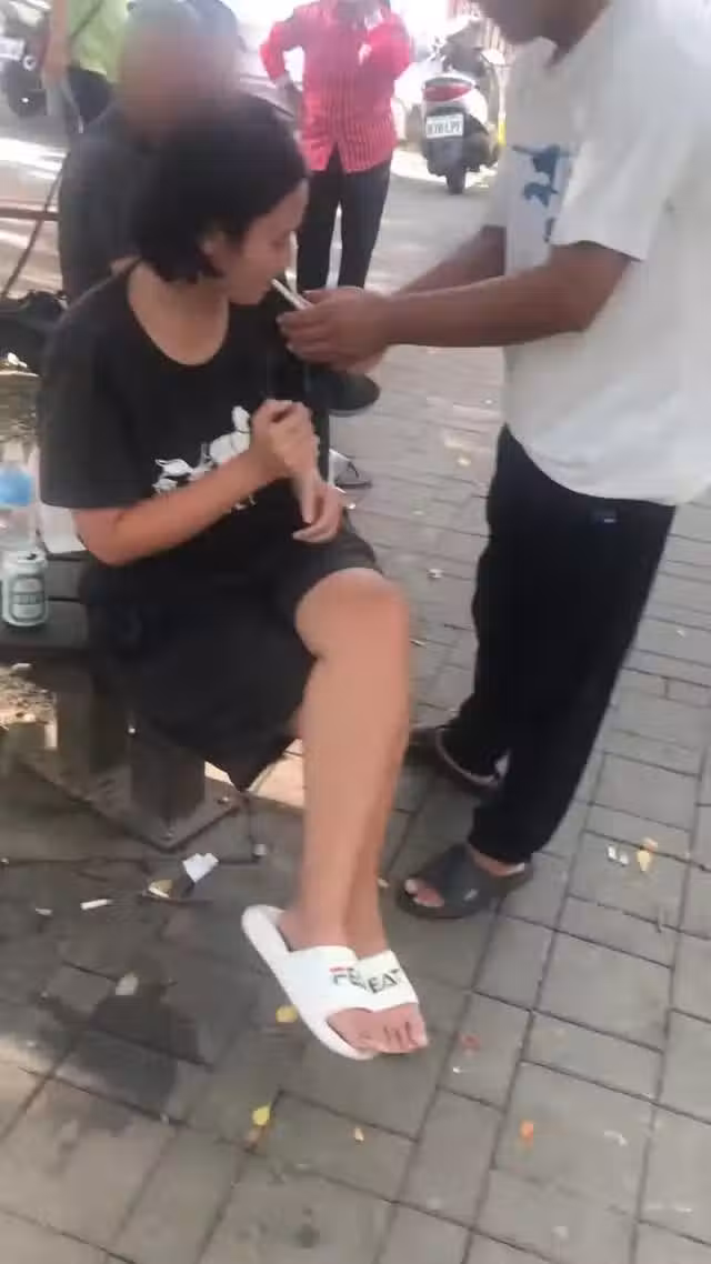 林靖恩現身街頭被半裸老漢x騷擾,她沒逃走和另一老漢同吸一根煙