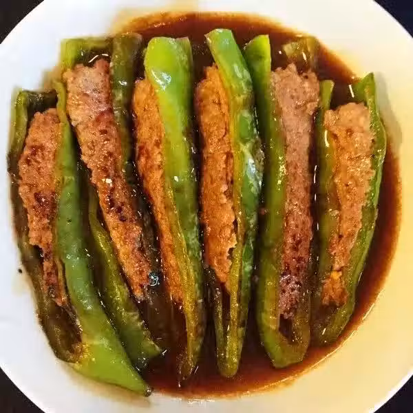 7、鍋里放適量油,燒熱後放入釀好的尖椒,兩面都煎香。
