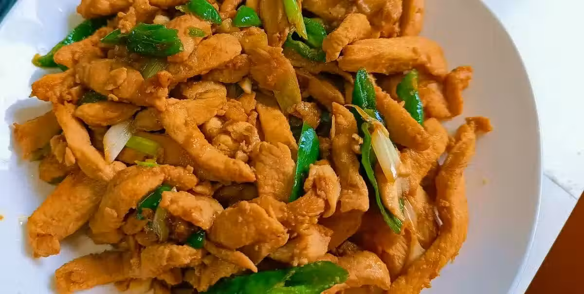 【家常炒雞胸肉】:準備食材有:雞胸肉2塊 玉米澱粉、食鹽、黑胡椒粉、生抽、料酒、蚝油、老抽、蔥、姜、蒜、尖椒