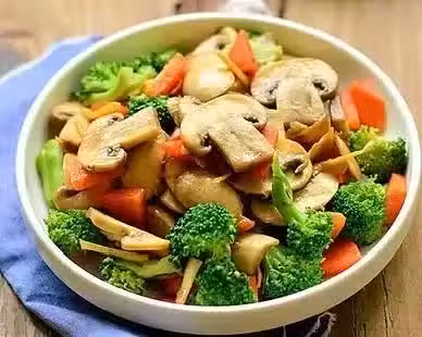 口蘑(200g)、西蘭花(80g)、胡蘿蔔(3/1個)、姜(3g)、蒜(2瓣)、生抽(1茶匙)、鹽(少許)
