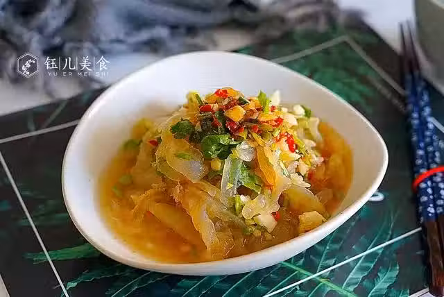 做法:1、將海蜇頭簡單洗一洗。2、然後放入水中浸泡,海蜇頭比較咸,所以浸泡期間記得多換幾次清水,這樣可以減少海蜇頭的鹹味。3、再將海蜇頭切成條狀或切絲。4、將海蜇絲放入70度的開水鍋里焯水十幾秒,即可撈出來過涼水。5、瀝干水分後放入料理盆里,加入蒜蓉、小米辣、香菜、白糖、雞精、香醋、芝麻油,調拌均勻腌制3分鐘,即可放入盤子裡。