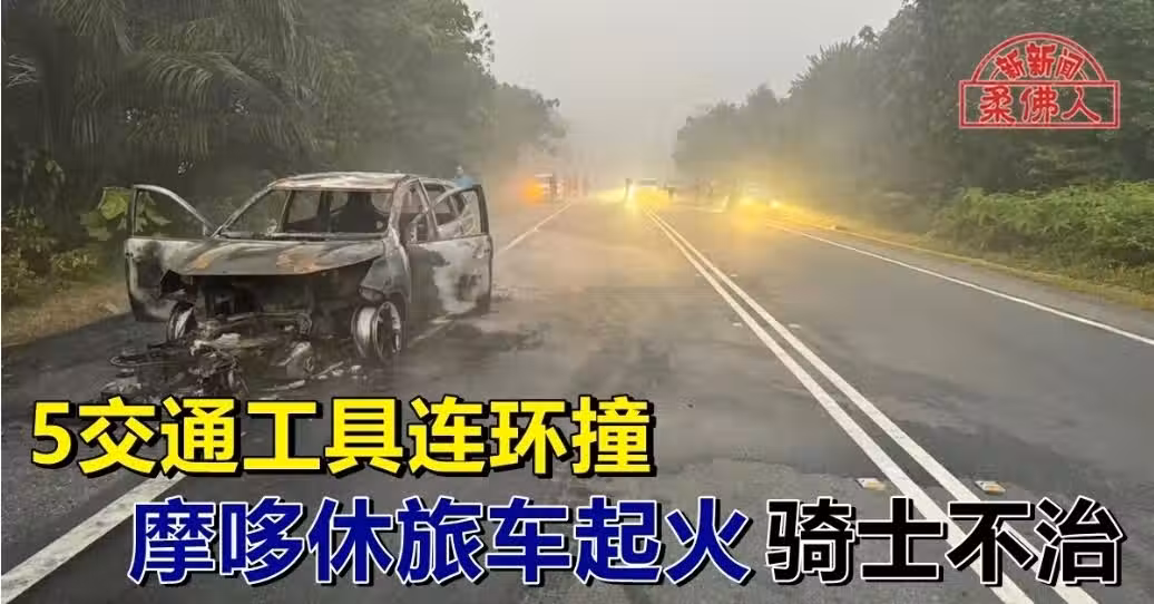 5交通工具連環撞 摩哆休旅車起火 騎士不治