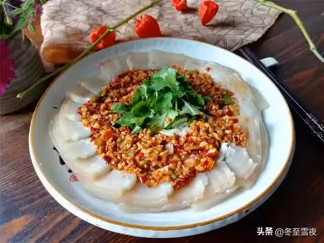 【蒜泥五花肉】所需材料:五花肉500克、香菜1棵、香油1湯匙、辣椒油1湯匙、鹽適量、蔥1段、將塊、大蒜1頭、醬油3湯匙、白糖1茶匙、料酒1湯匙、花椒10粒、桂皮1塊、