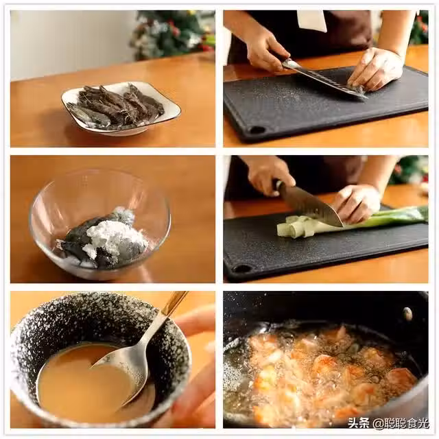 【操作步驟】1、準備一斤鮮蝦,把蝦頭連帶著蝦線一起取下來,剝掉蝦殼留蝦仁備用。把蝦仁放在案板上,用刀把蝦仁的後背劃開。