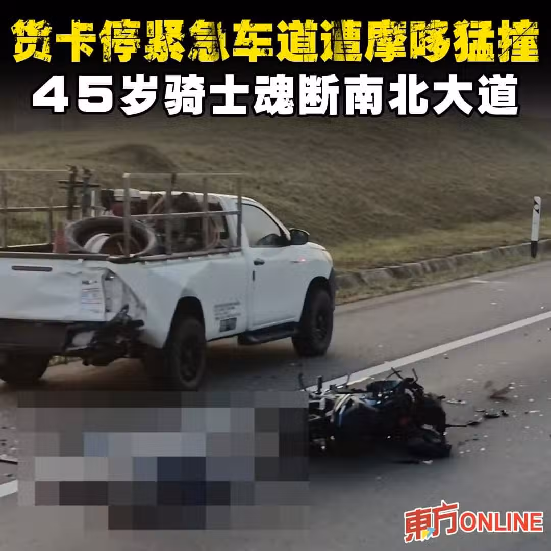 貨卡停緊急車道遭摩哆猛撞 45歲騎士魂斷南北大道