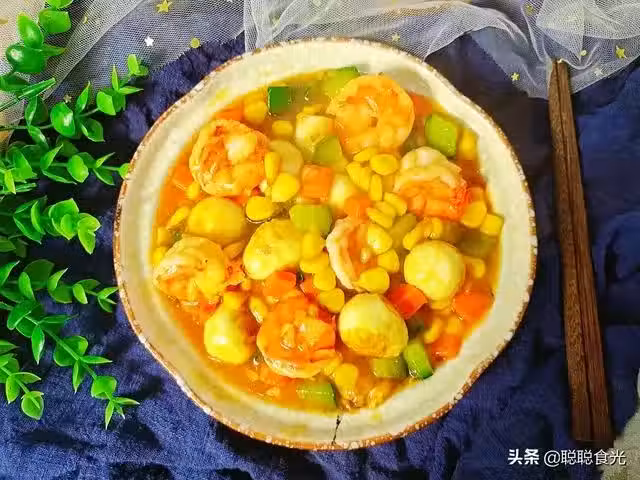 【食材】鵪鶉蛋、大蝦、玉米、胡蘿蔔、黃瓜、大蒜、生抽、白糖、番茄醬、澱粉