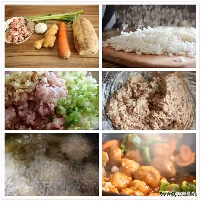 8、把胡蘿蔔和青椒炒熟後,下入蒸好的藕丸,翻炒一下,讓丸子上面均勻的裹滿醬汁,就做好了。