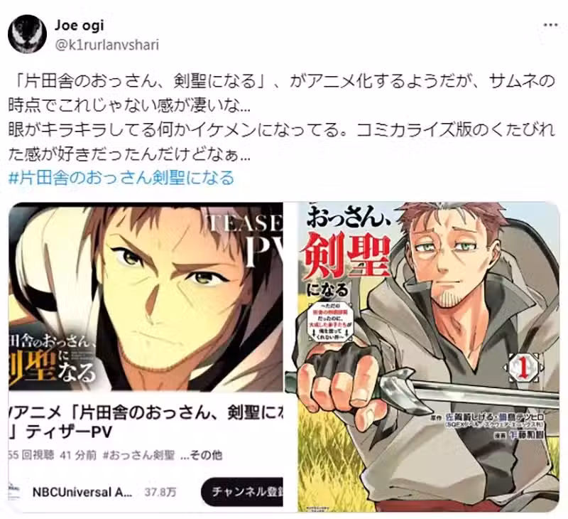 《鄉下大叔成為劍聖》粉絲對動畫版人設很有意見,主角看起來太帥也不行?