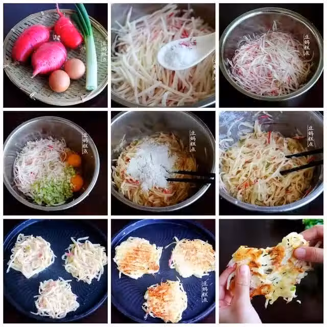 1、蘿蔔絲里出的水一般不用倒掉,後面剛好用來和麵粉。