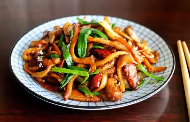 【食材】:平菇、五花肉、姜、干辣椒、小香蔥