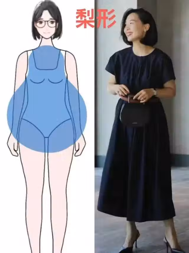 沙漏型身材可以說是相對比較完美的身材了,胸部、腿部、臀部皆凹凸有致,腰部曲線明顯,肩膀與臀部基本同寬,整體呈現沙漏狀。 建議選擇能夠凸顯腰部曲線的裙子,如修身連衣裙,可以很好放大這類身材的優勢,展示女性獨特韻味。