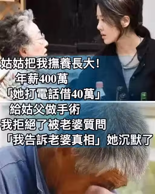 姑姑把我撫養長大!今年薪400萬「她打電話借40萬」給姑父做手術 我拒絕了被老婆質問「我告訴老婆真相」她沉默了~