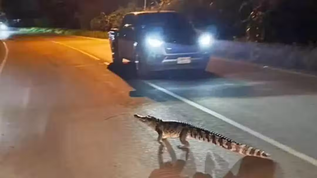 圖片來自KHAOSOD ENGLISH 8月5日晚上,這條鱷魚橫穿馬路並消失在黑暗中,雖然大家害怕但礙於沒有捕捉工具也沒人敢上前捕捉。 出於公共安全考慮,當地政府已經在民眾報案後去搜尋抓捕它。 目前大家不知道這條鱷魚從哪兒來,但它逃進了田野…… TIMES君猜想,是否由於連日暴雨導致水位上漲,然後高漲的河水也把本來在野外的鱷魚給送到了市區。。