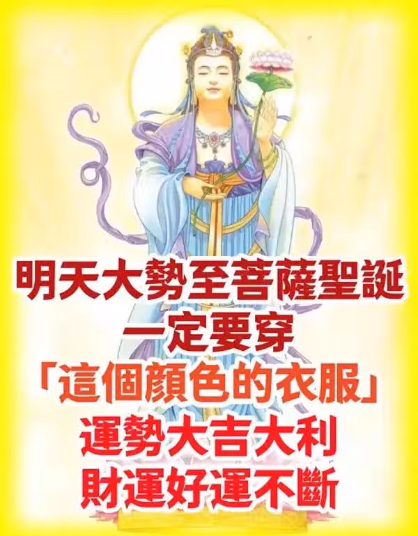 明天大勢至菩薩聖誕,一定要穿「這個顏色的衣服」運勢大吉大利,財運好運不斷 !