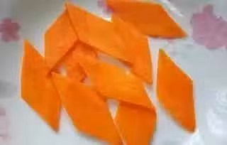 2.準備料頭:胡蘿蔔半根切菱形片,黃瓜半根切菱形片備用,泡發好的木耳將其撕成小朵備用,小蔥一根切成蔥花備用。