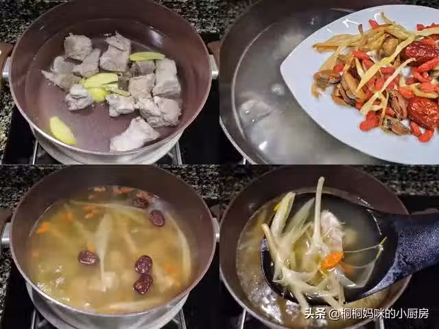 3、然後將湯料(黃花菜、淡菜、枸杞、紅棗)放下去小火煮一個半小時左右,出鍋前適量鹽調味。