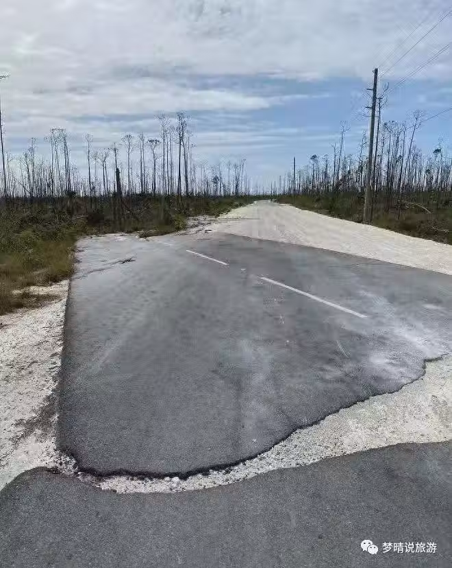 第十二張:一場暴風雨過後,路面上所鋪設的瀝青整片被沖毀……。大自然的憤怒就像一位狂怒的藝術家,把人類的城市畫成了抽象派的油畫。