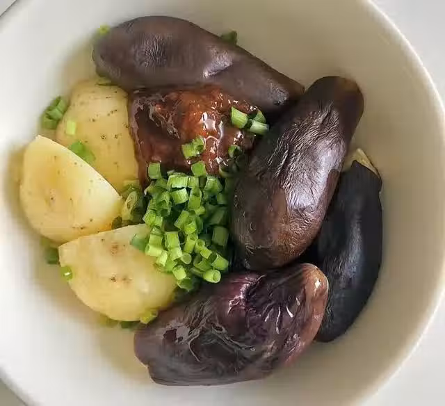 這道簡單又美味的食譜,是從婆婆那學來的,因為太好吃了!又很好做!分享給大家。可以想像每一根茄子上都包裹著土豆泥,土豆泥又混合著部分茄子泥,入口綿軟,有著香蔥和香油的香氣 這味道,簡直了。