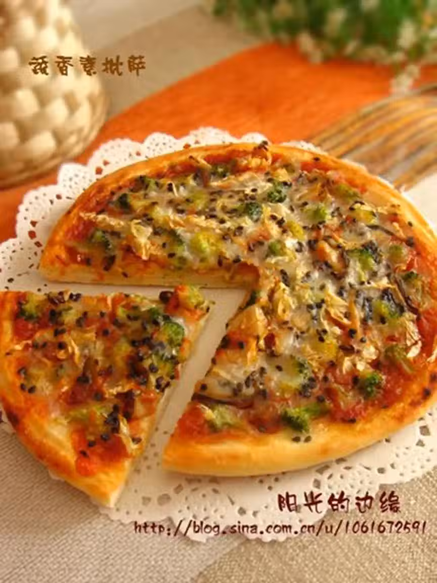 【蔬香素批薩】 最近在家搗鼓烤箱,在素蛋糕方面一直沒什麼進展,烤餅倒是經常做,什麼餡都往上堆,賣相一般般,但味道都還不錯。 今天又想做烤餅了,想想不如嘗試下素批薩吧。