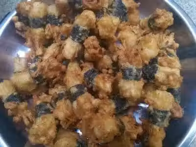 把炸好的素排骨倒入醬汁里...拌均勻