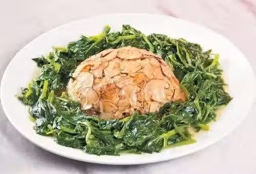 1.韓松切成薄片,排在扣碗內。