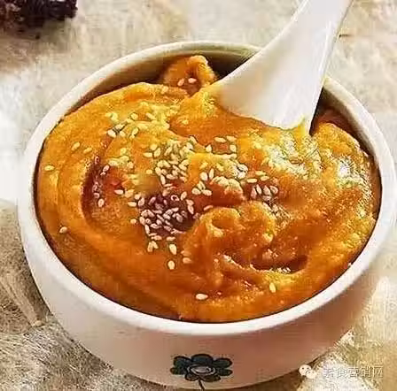 3、將蒸熟的幾樣材料放入攪拌機中,加少量溫開水,攪拌成泥,盛入碗中,撒些熟芝麻或乾果碎即可。